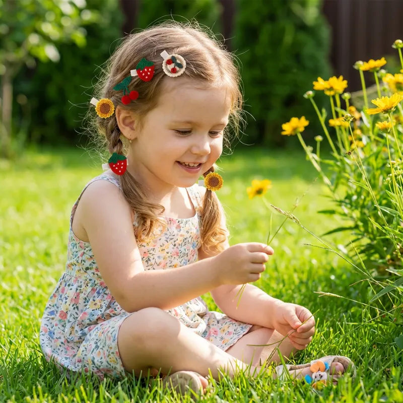 My five-year-old usually pulls clips out, but she keeps these in because she loves the tiny strawberries. Morning hair battles have turned into her happily choosing designs.