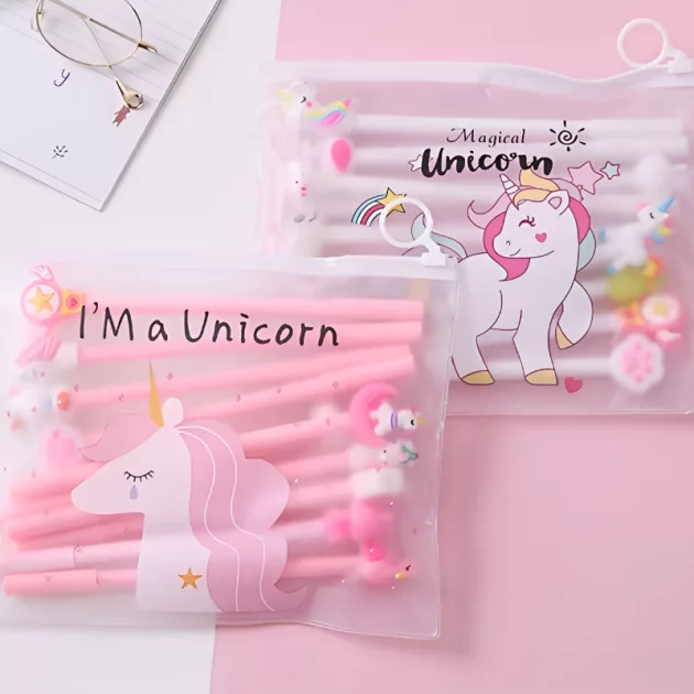 I have used my unicorn pens for weeks and the ink still flows perfectly. The cute bag never gets lost in my big backpack.