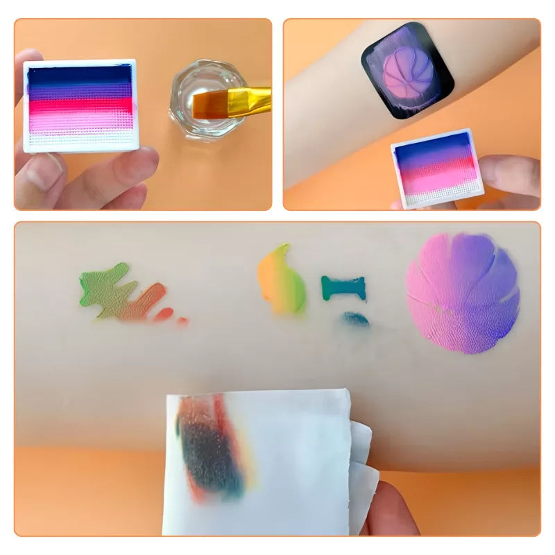 Used the paint for a unicorn party. Everyone had pretty designs and even adults joined! Washed off with just a wipe—no stains at all.