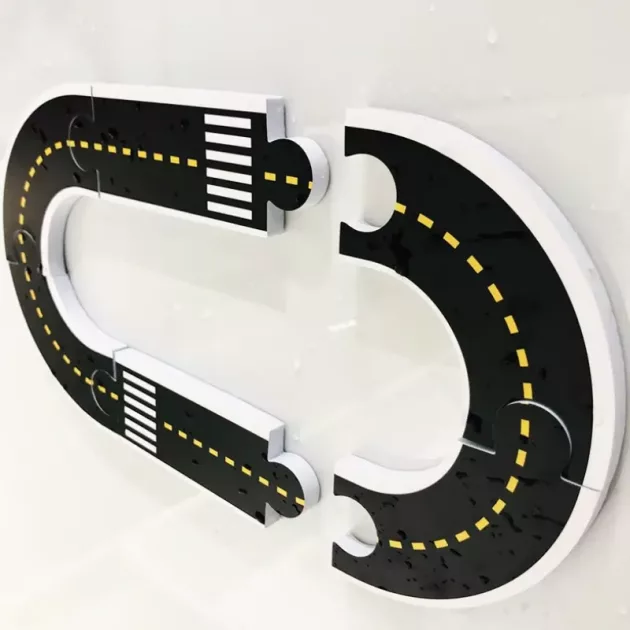 We make new traffic patterns every night. The set keeps my daughter busy while I wash her hair, with no fuss.