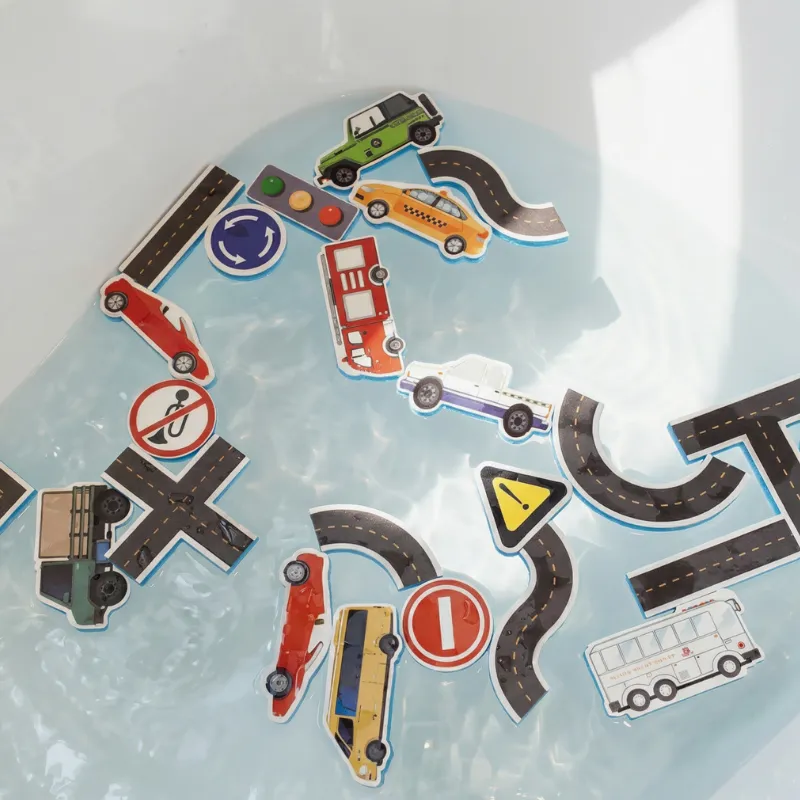 These stickers turn boring baths into fun city adventures! My son loves organizing the roads and cars in new ways every night.