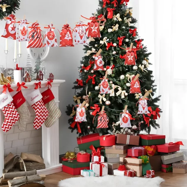 24pcs Christmas Advent Calendar Bags Empty Hanging Pouches Set