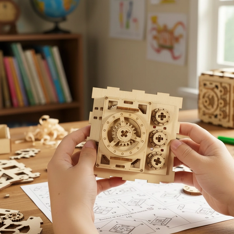 My sister and I built the wooden safe together. The instructions were clear, and we didn’t need any adult help. Now I use it for my jewelry!