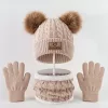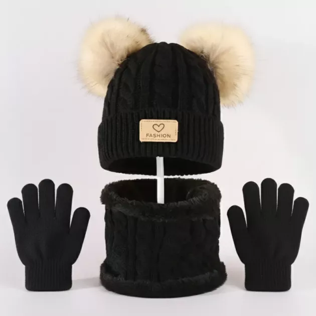 3pcs Cute Warm Cotton Hat Scarf and Gloves Set for Kids