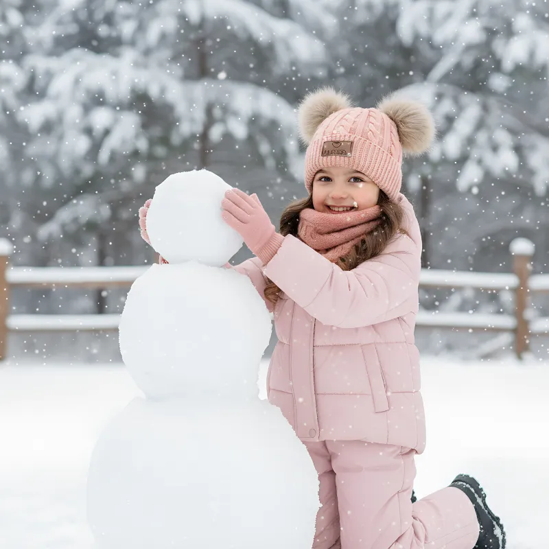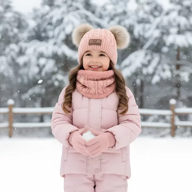 Perfect for snowy playground visits! The fabric keeps moisture away, and the scarf stays on even during wild play.