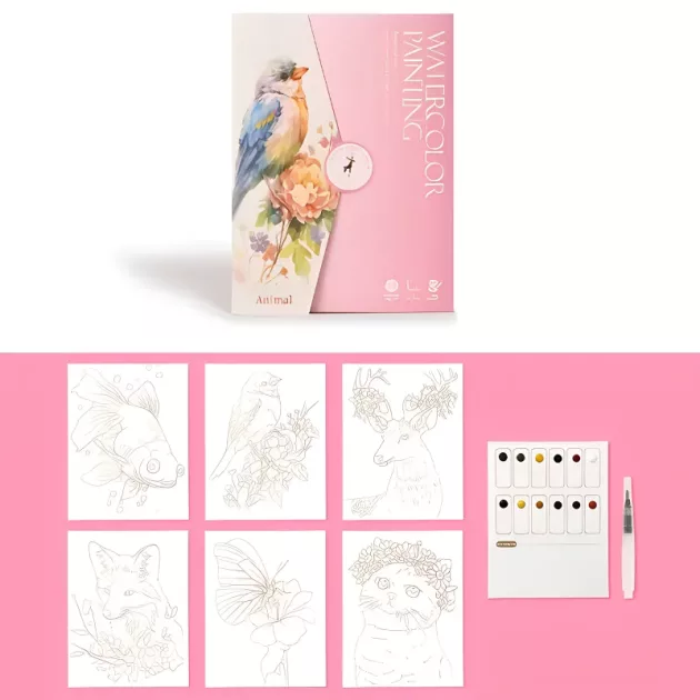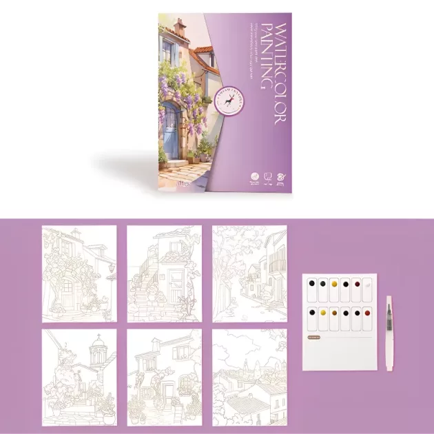 6 Sheets Watercolour Painting Set Book Art Travel Kit