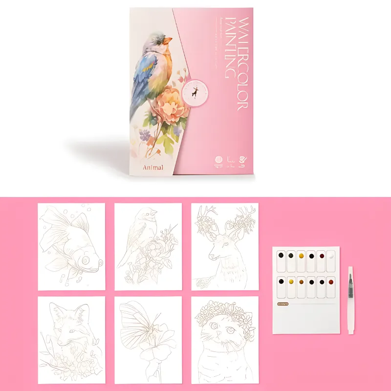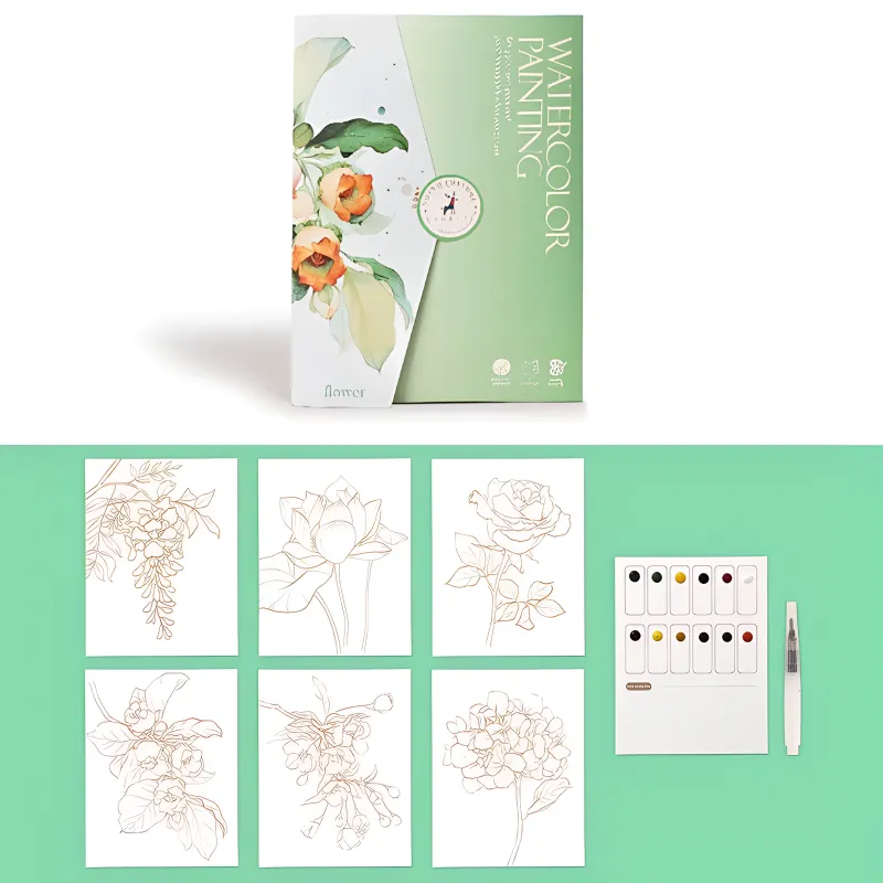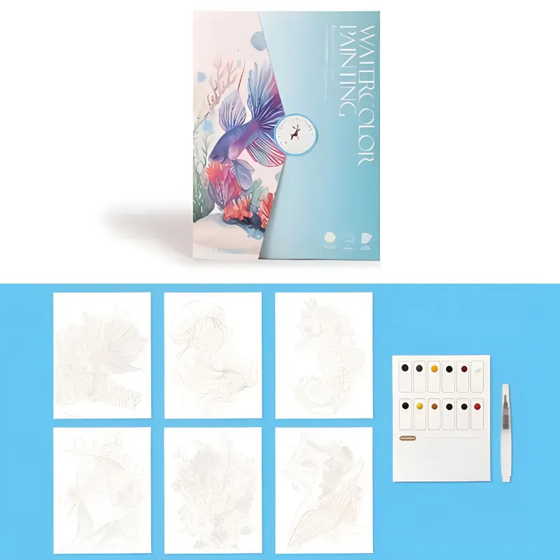 6 Sheets Watercolour Painting Set Book Art Travel Kit