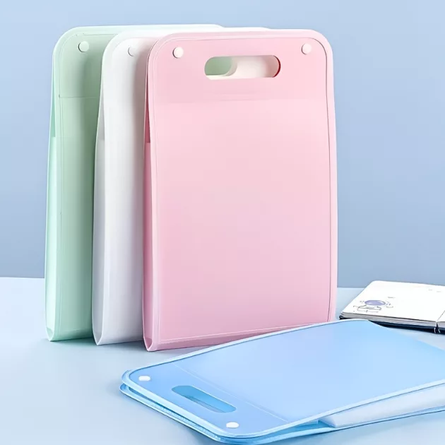 This file folder keeps my stuff together even when I run to catch the bus. The pockets are clear, so nothing gets mixed up.