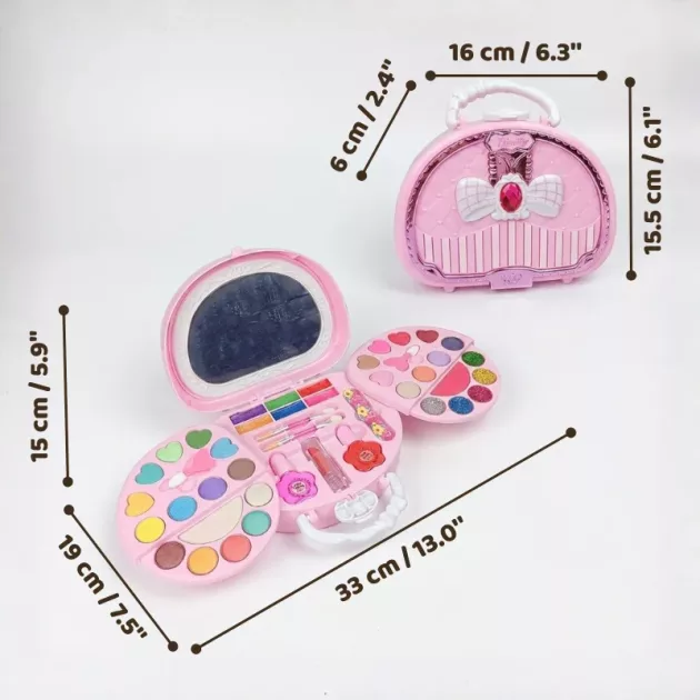 My toddler loves showing off her makeup box to her friends at playdates. The case is light and makes carrying everything fun.