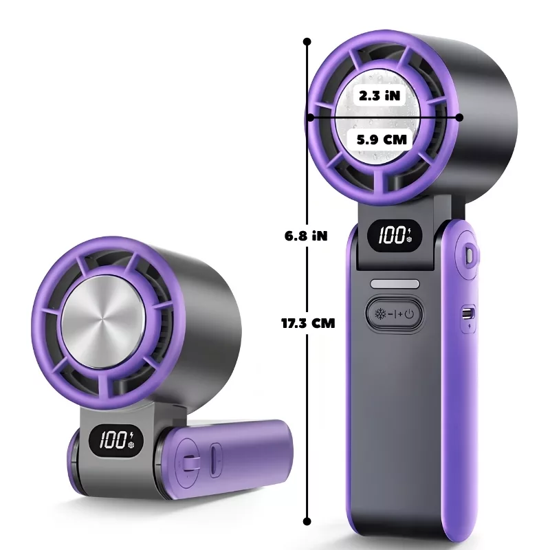 Took the mini fan on vacation. Awesome that it fit in my daughter’s small bag. Running time lasted the whole afternoon at the park!