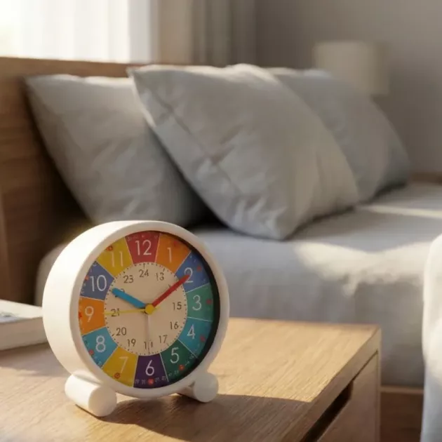 My twins share this bedside clock and no longer argue about when it’s bedtime. The clear colours and quiet ticking keep the room calm.
