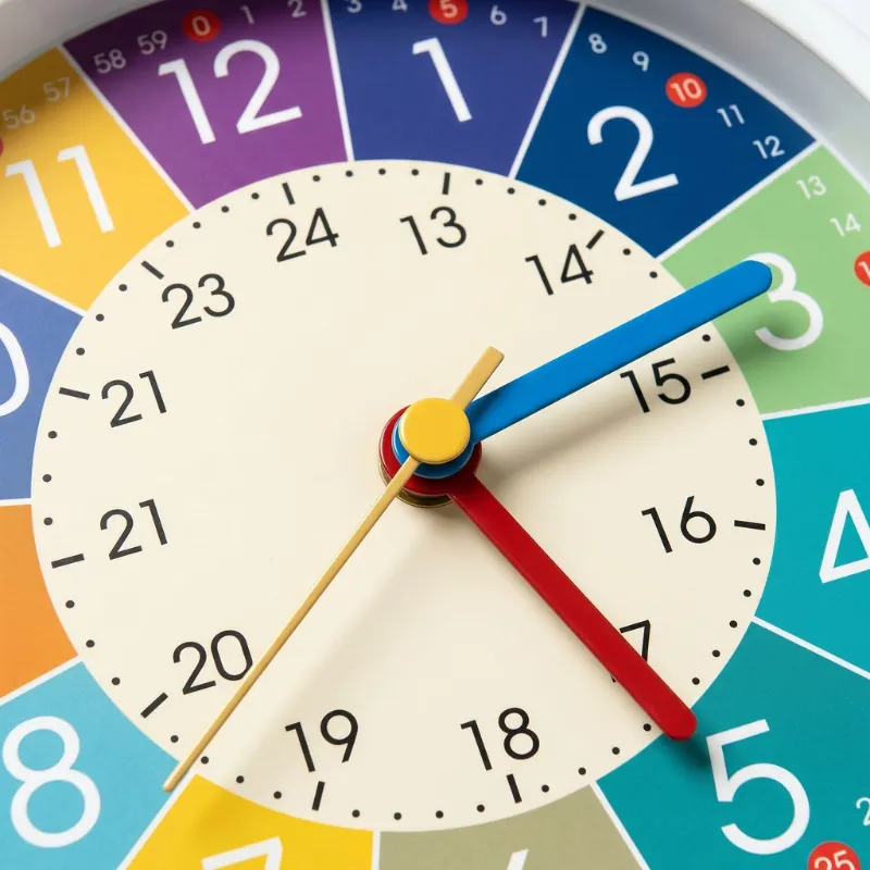 The coloured sections helped my son finally understand quarter past and half past. He now sets his own alarm for football practice without trouble.