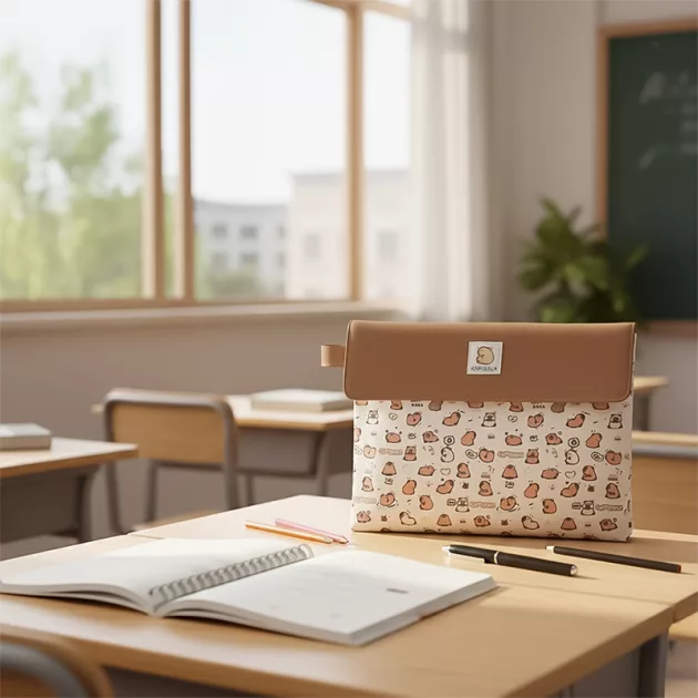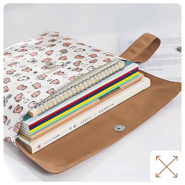 My papers and workbooks stay clean and organized inside this really cute bag. The closure keeps everything inside, even when I’m in a hurry.