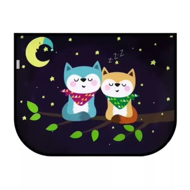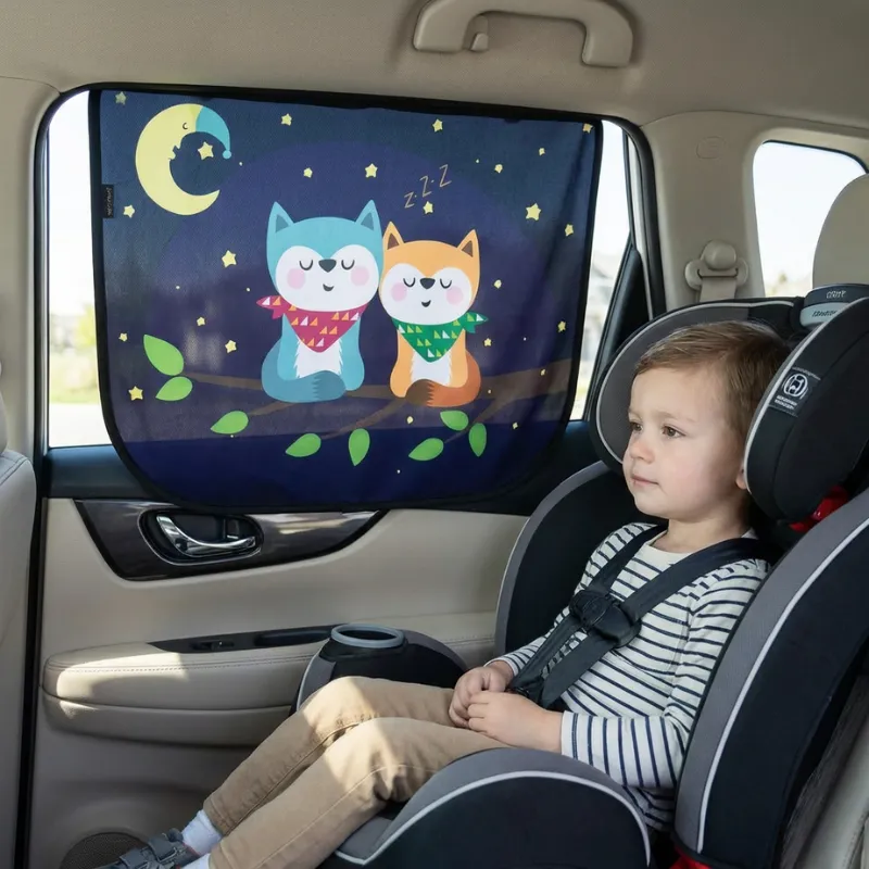 The cute night scene makes bedtime drives easier. My son traces the stars on the fabric, calms down, and usually drifts off before we get home.
