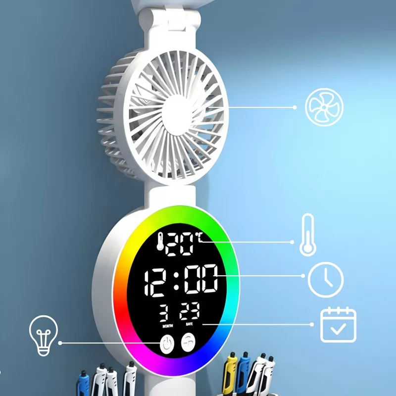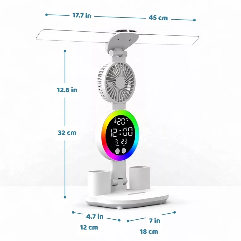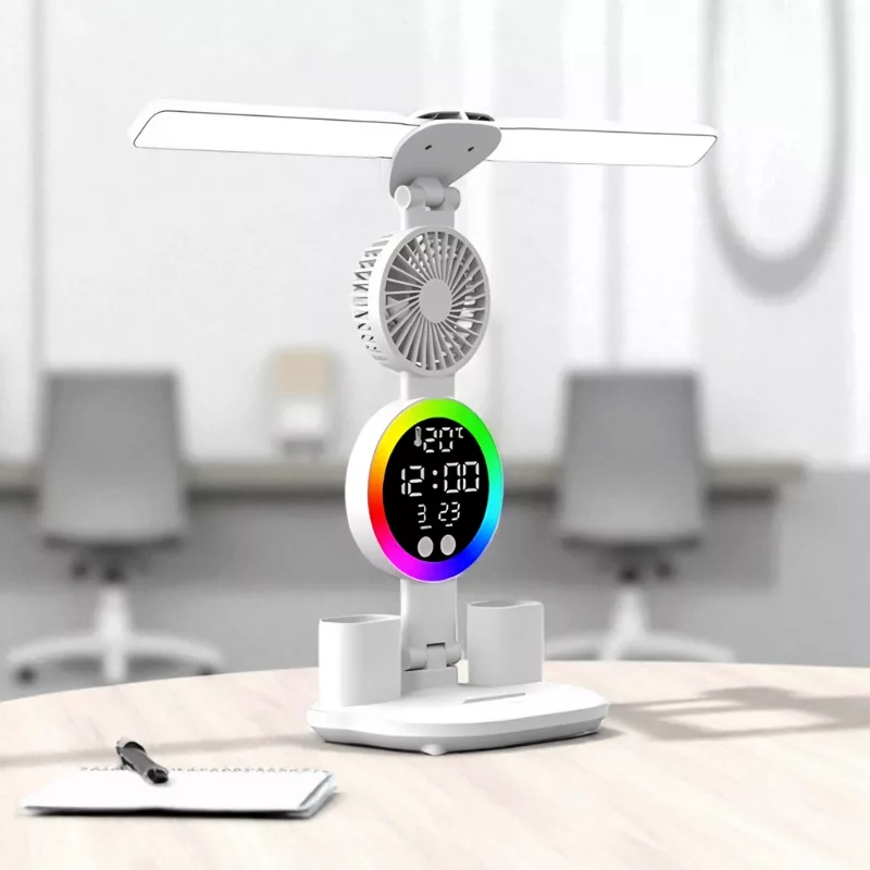 Super useful for online classes—no more dim room. The fan keeps me from getting sweaty and clock helps me time breaks.