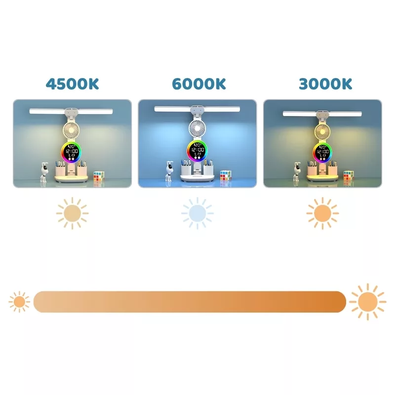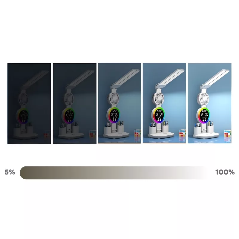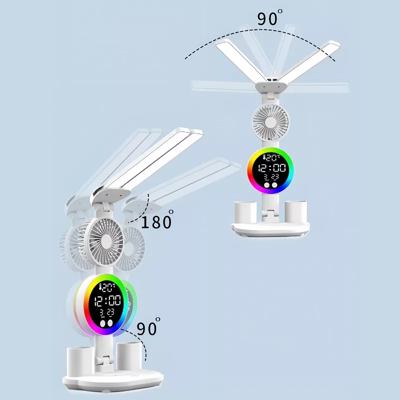 I use the lamp every night for homework. The fan keeps me cool, and the clock helps me keep track of time. Super helpful!