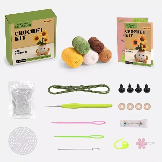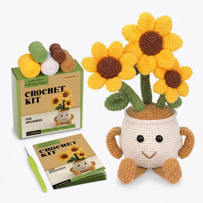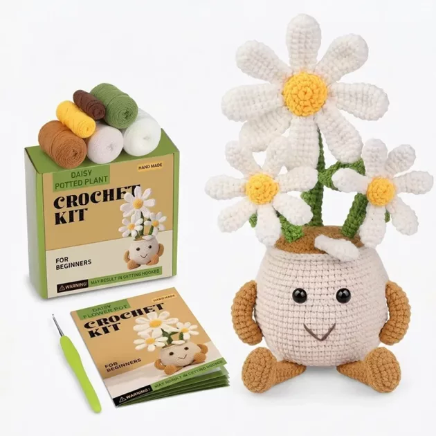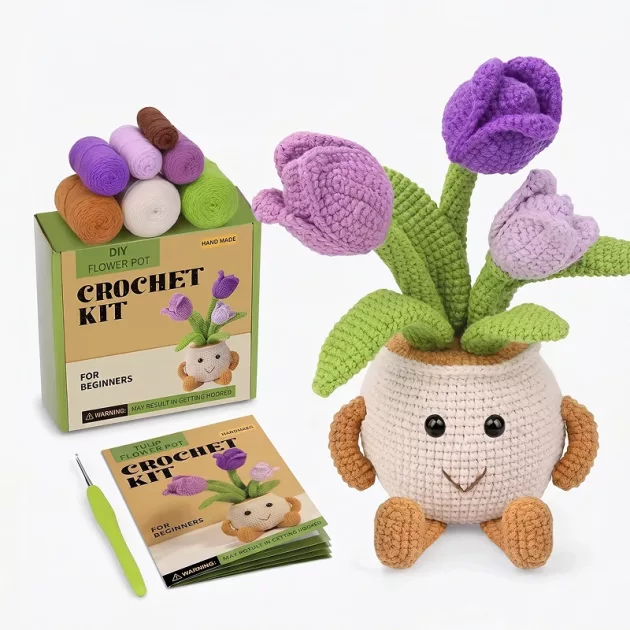 I bought the flower pot set for my 8-year-old. She usually gets frustrated, but the clear pictures and soft yarn kept her calm and really boosted her confidence.