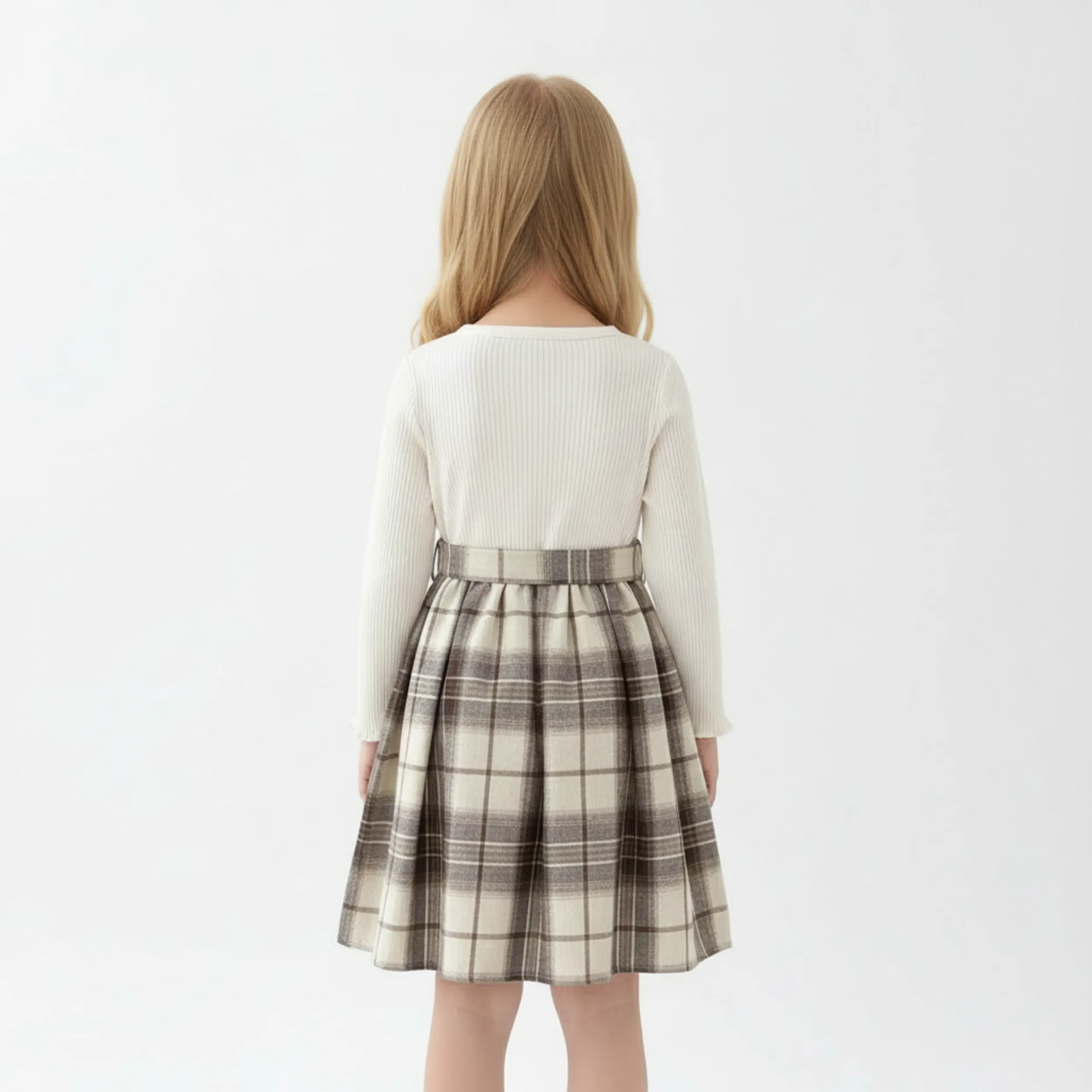 Fake Two-Piece Long Sleeve Plaid Dress with Beret for Kids