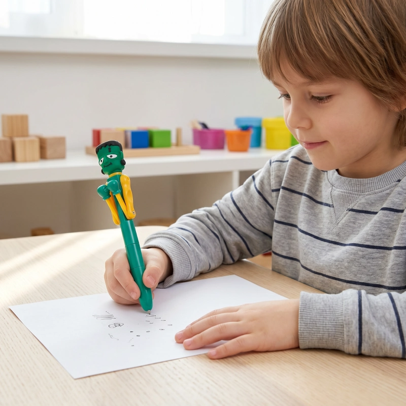 Homework used to end in tears. Since I gave my son this silly pen, he sits longer, taps the character, and actually enjoys copying sentences from the board.