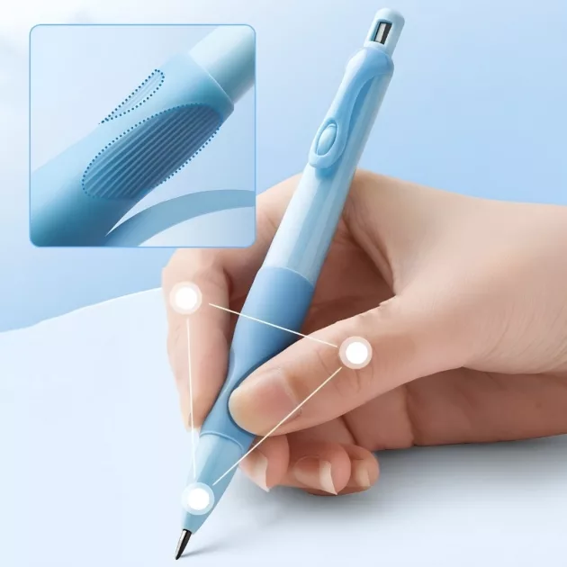 Perfect Grip - Special grooves keep fingers steady for proper control. This design helps prevent discomfort and supports neat handwriting.