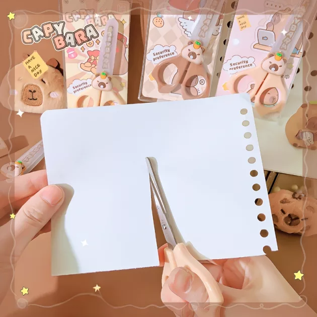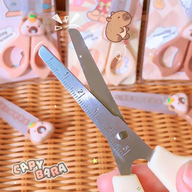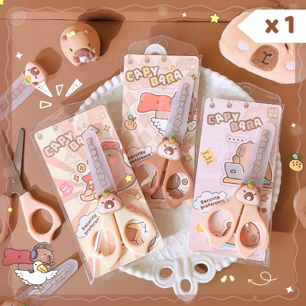 The little capybara on the scissors makes my kid smile every time. They cut paper smoothly and the tips are really safe.