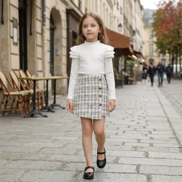 Lightweight and totally comfortable for my kid. The plaid skirt adds a sweet detail to her outfit rotation!