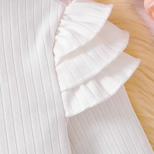 Looks adorable and feels gentle on sensitive skin. My little one loves twirling around in the skirt. The ruffles are such a cute touch.