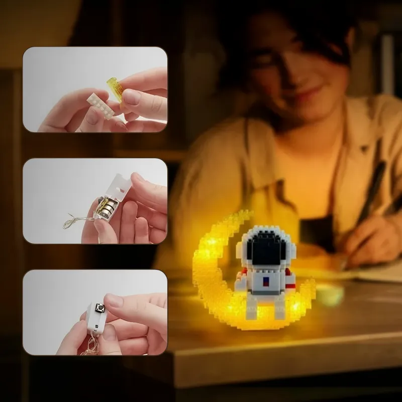 Luminous Astronaut on the Moon Building Blocks Assembly Toy