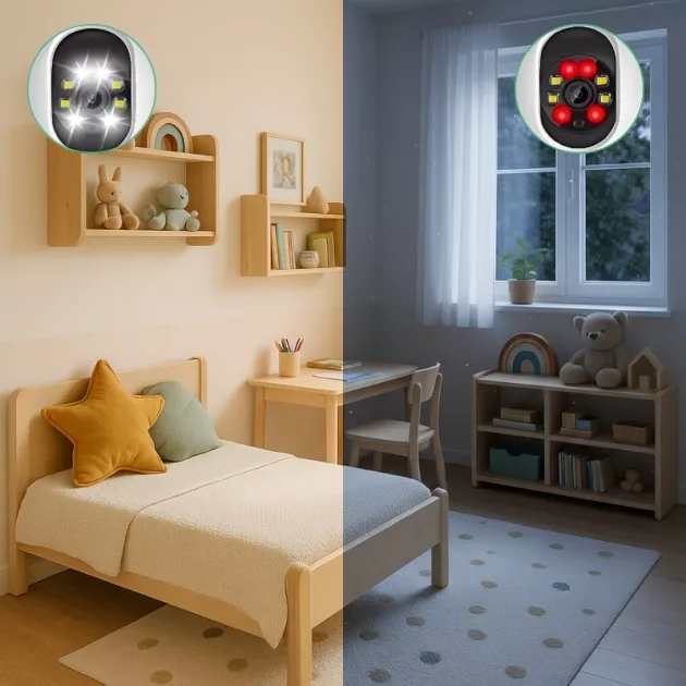 Night Vision - Bright LED lights and clear infrared show everything in the darkness. Children sleep safely while you see every moment clearly all night.
