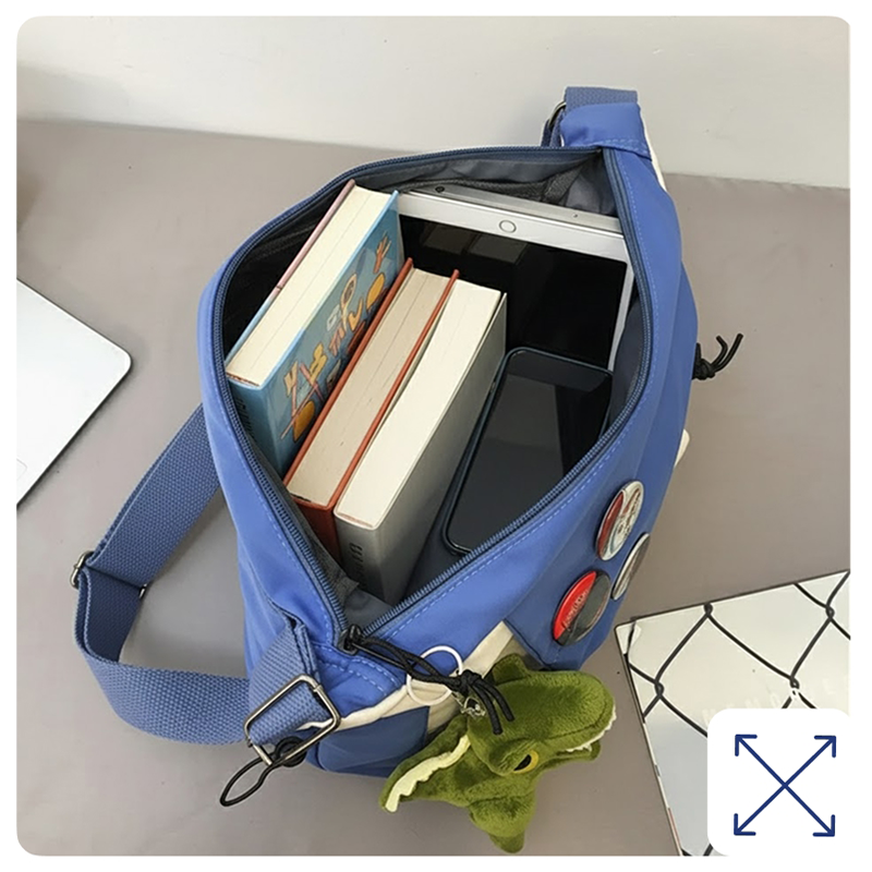 This crossbody is my go-to for after school. Fits my snacks, mini toy and notebook. Super cute and comfy on my shoulder.
