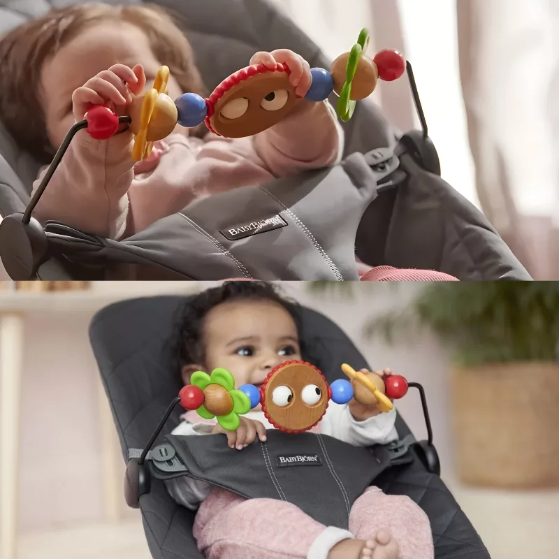 Easy to install - Mounting this rattle on a bouncer or a crib is a breeze. There's no need for any tools, and the setup takes just a few moments.