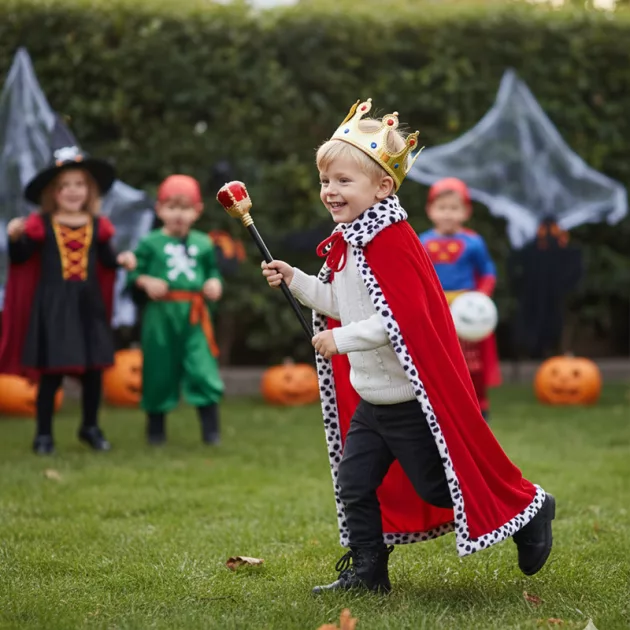 My son wore the king costume for Halloween and wouldn’t take it off. The soft velvety cape made him feel awesome and super royal all night long.