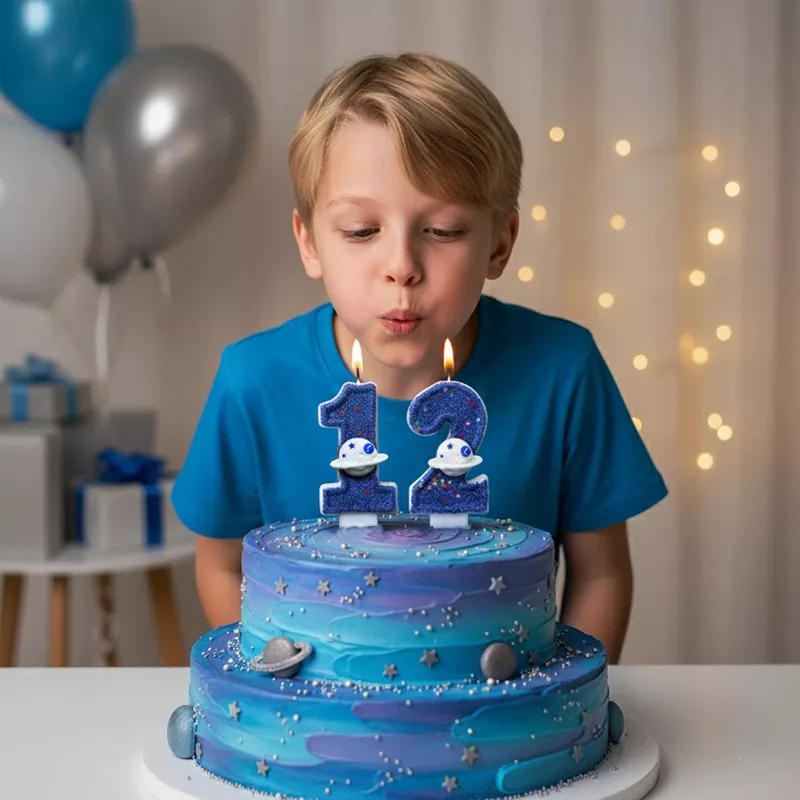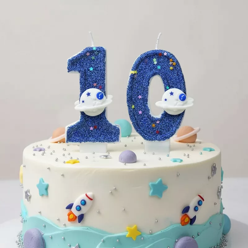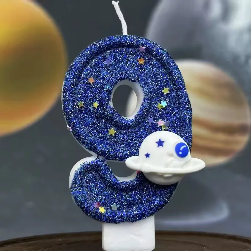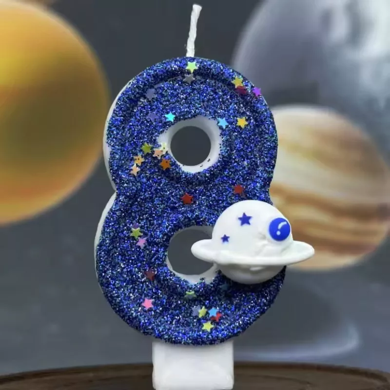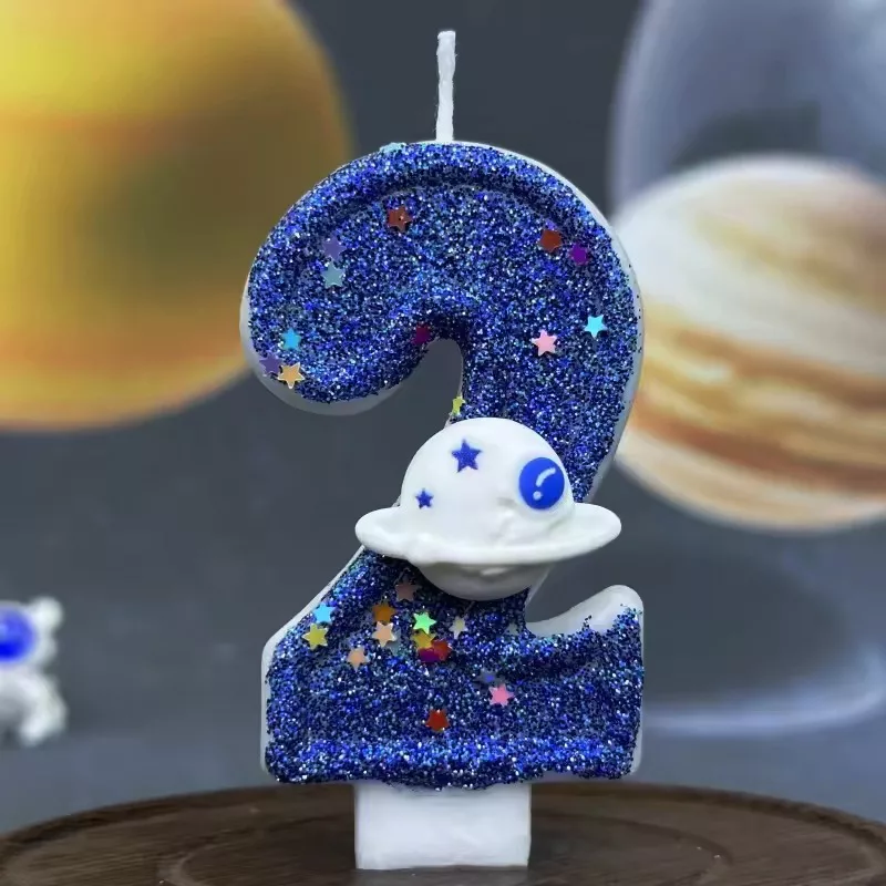 birthday cake candle, space theme cake candle, birthday number candle