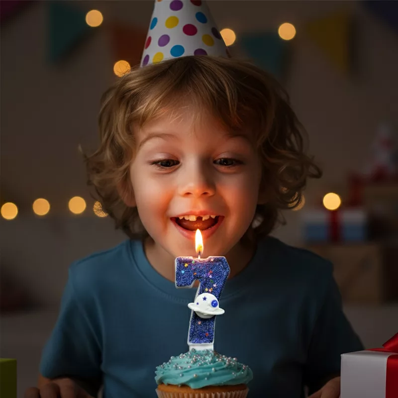 My son was thrilled seeing his cake with this candle! The space design looked so cool in every photo and it was easy to light.