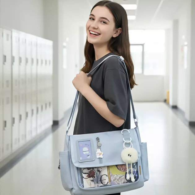 Comfortable Carry - Adjustable strap ensures a snug fit across the shoulder. Light construction means less strain on growing backs.