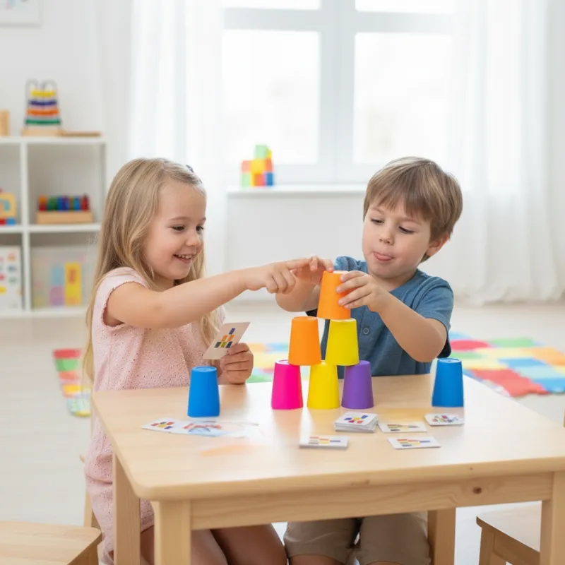 We got this stack cup game for our kids and it turned into our go-to family game night. The bright cups keep everyone giggling and thinking fast.