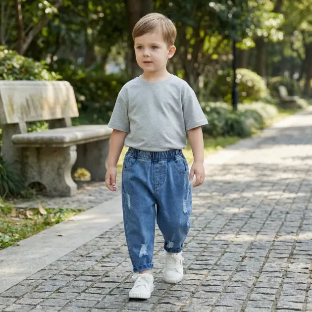 All-Day Comfort - Soft elastic waist ensures quick dressing every morning. Breathable denim keeps little legs cool during busy activities.
