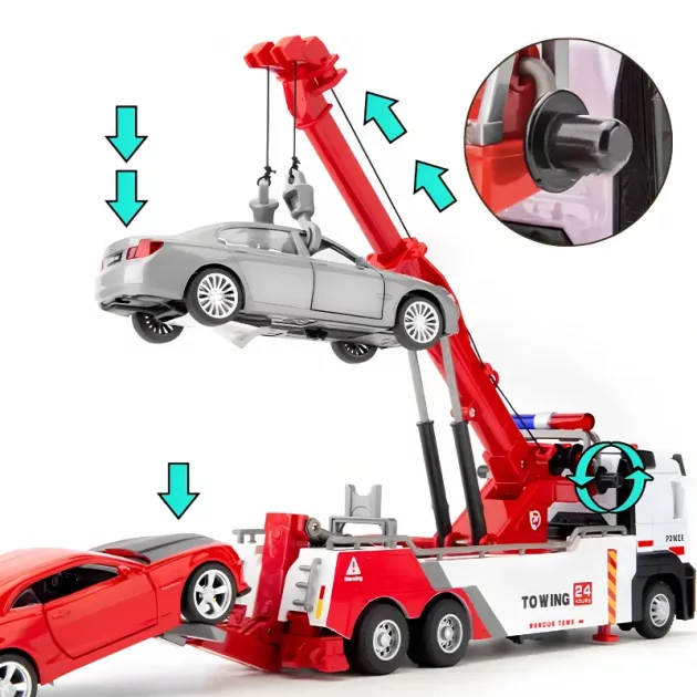 This tow truck is so much fun! My kids make up rescue stories nonstop. The pull-back is smooth and it never gets stuck.