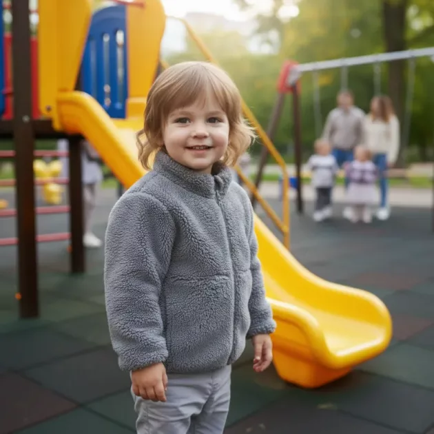 My daughter loves wearing this cozy jacket every morning. The zip makes it easy to put on, and it keeps her warm during our walks to school.
