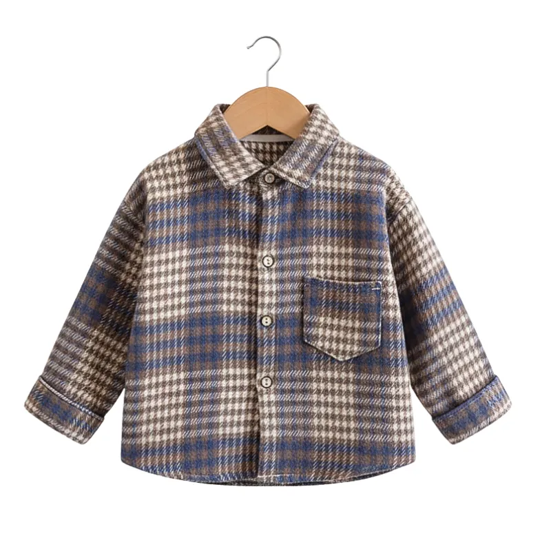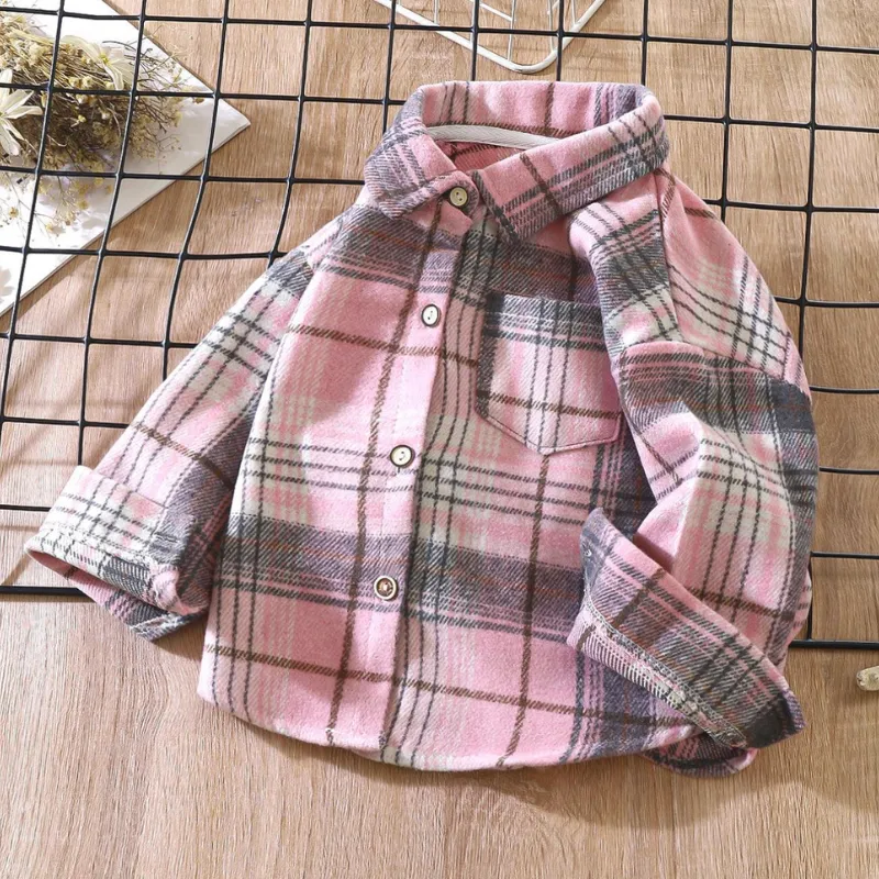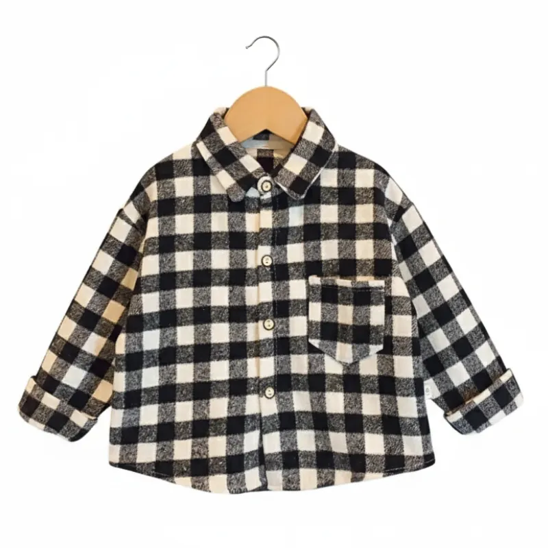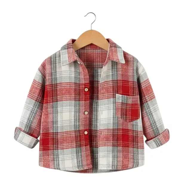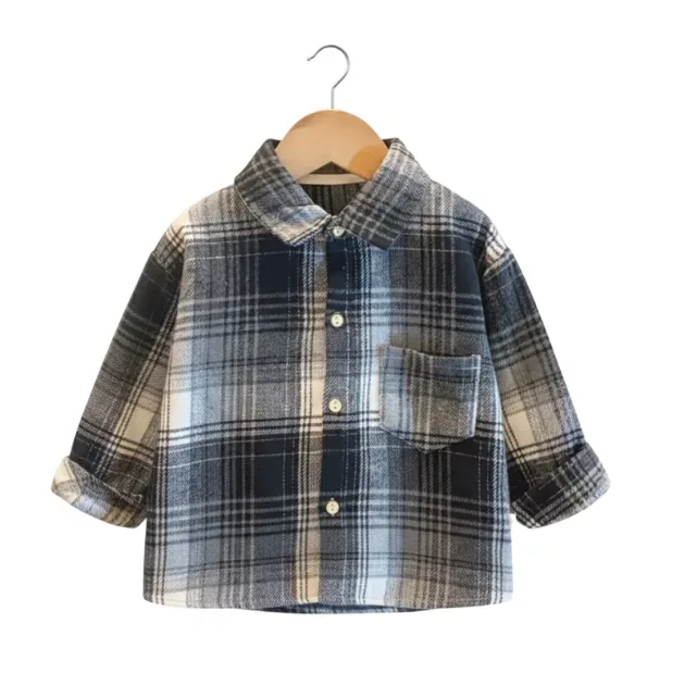 Warm Long-Sleeved Flannel Plaid Shirt for Kids