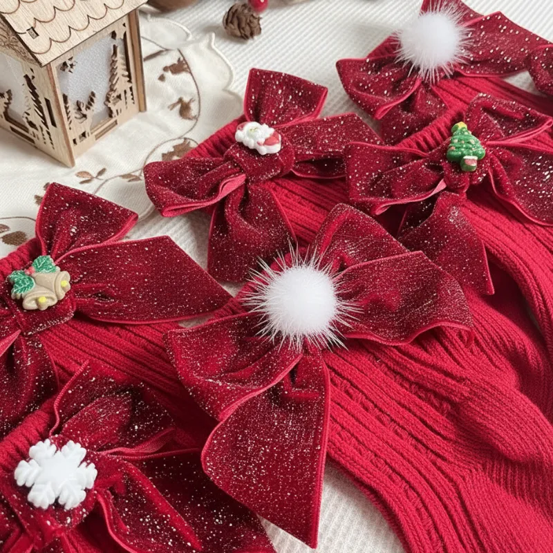 Your child will love running about at home on cold days. These cute knee-highs provide gentle warmth for every winter adventure. Bright seasonal colours and cheerful bows turn every step into a little celebration.