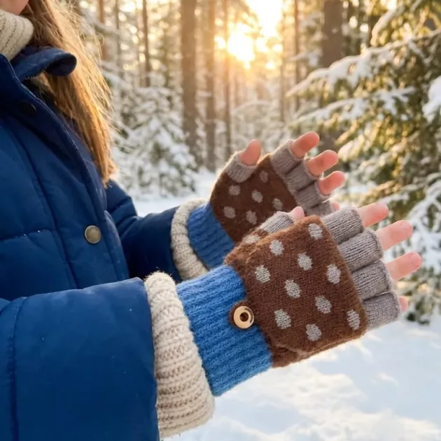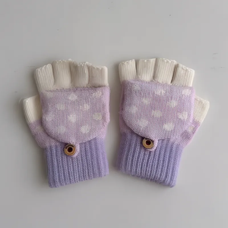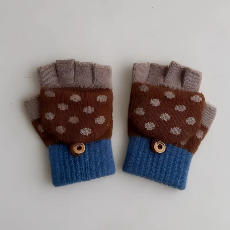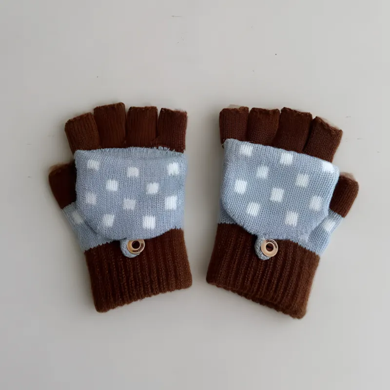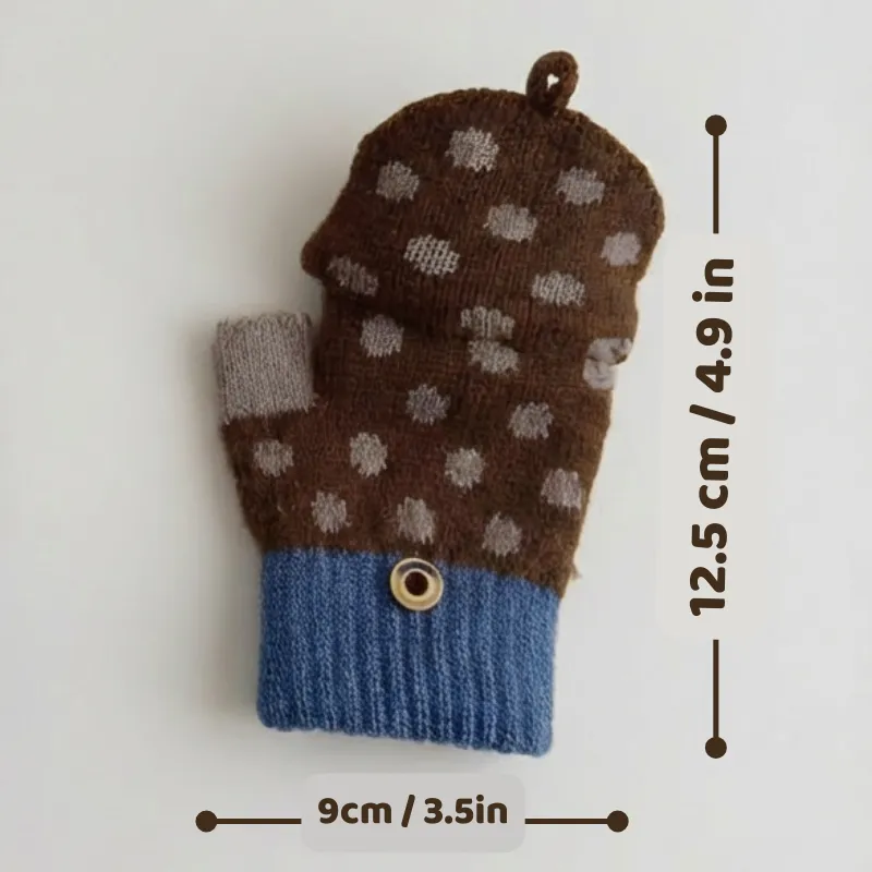 Winter Warm Soft Cotton Knitted Flip Top Gloves for Kids
