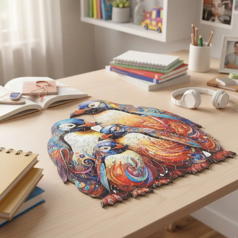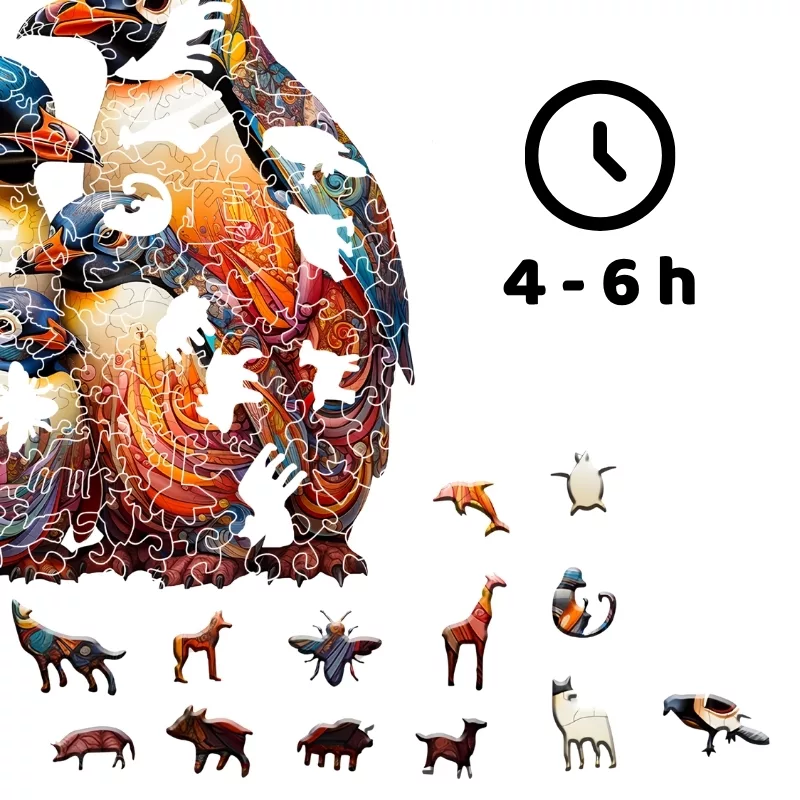 Bring everyone together for hours of joyful challenge. Each wooden piece helps build focus while hands stay busy. Watch creativity grow as colourful animal shapes come together to create a beautiful penguin. Enjoy laughter and learning every time you open the box.